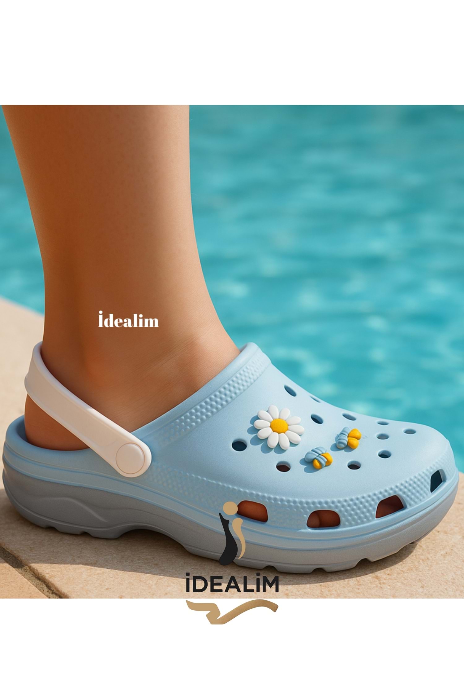 İDEALİM Rahat Tabanlı Yüksek Ölçekli Hastane Aşçı Hemşire Doktor Terliği - 222 FİĞÜRLÜ SÜSLÜ - MAVİ - 40