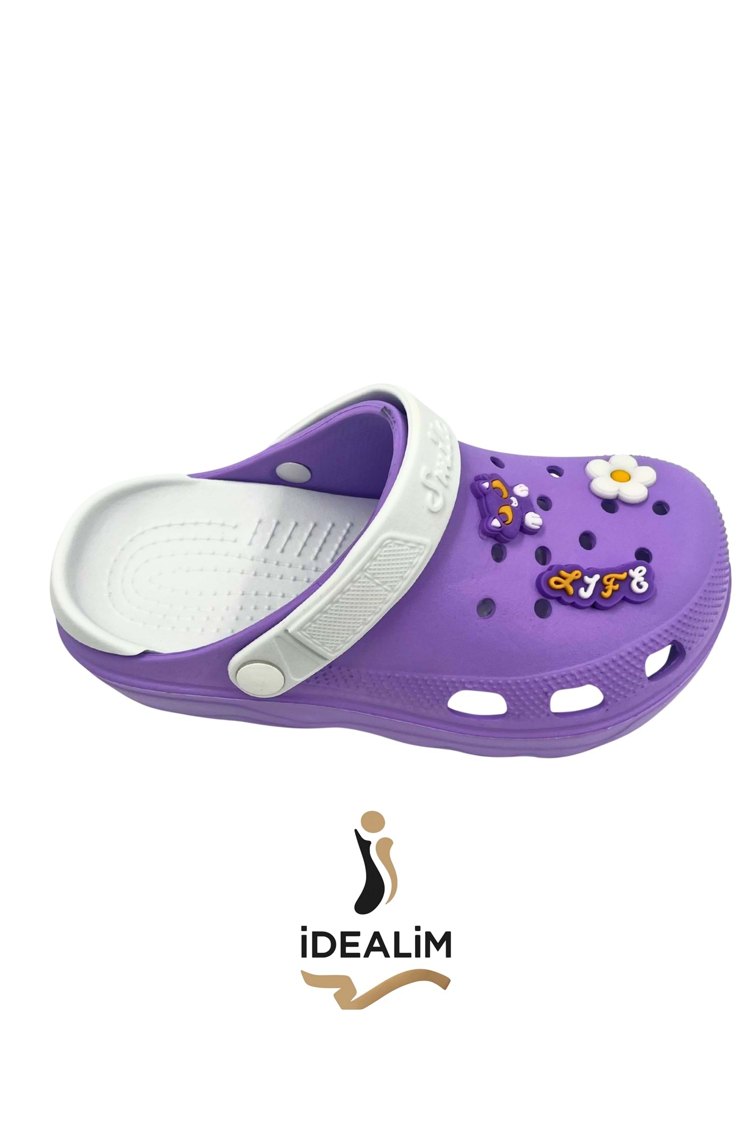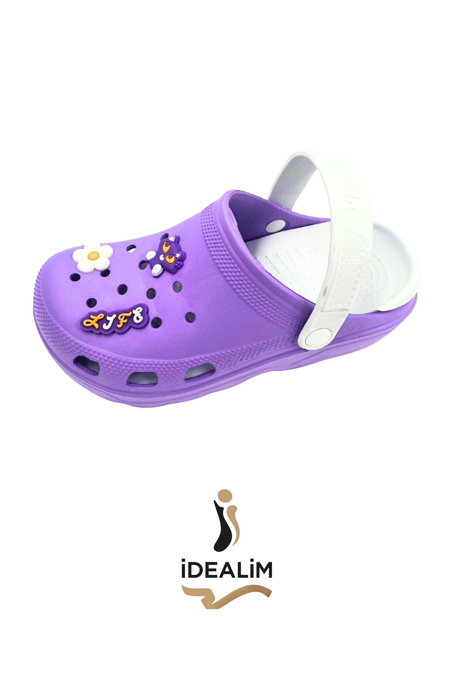 İDEALİM Rahat Tabanlı Yüksek Ölçekli Hastane Aşçı Hemşire Doktor Terliği - 222 FİĞÜRLÜ SÜSLÜ - MOR (BEYAZ) - 40