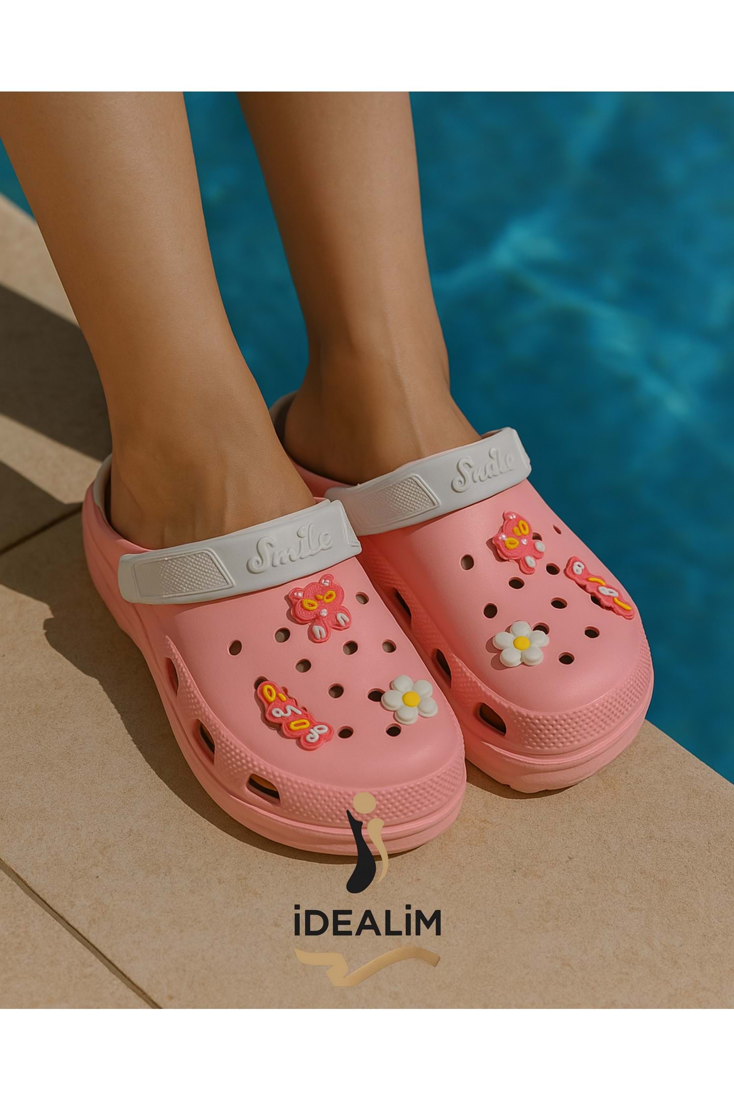 İDEALİM Rahat Tabanlı Yüksek Ölçekli Hastane Aşçı Hemşire Doktor Terliği - 222 FİĞÜRLÜ SÜSLÜ - PUDRA (BEYAZ) - 40