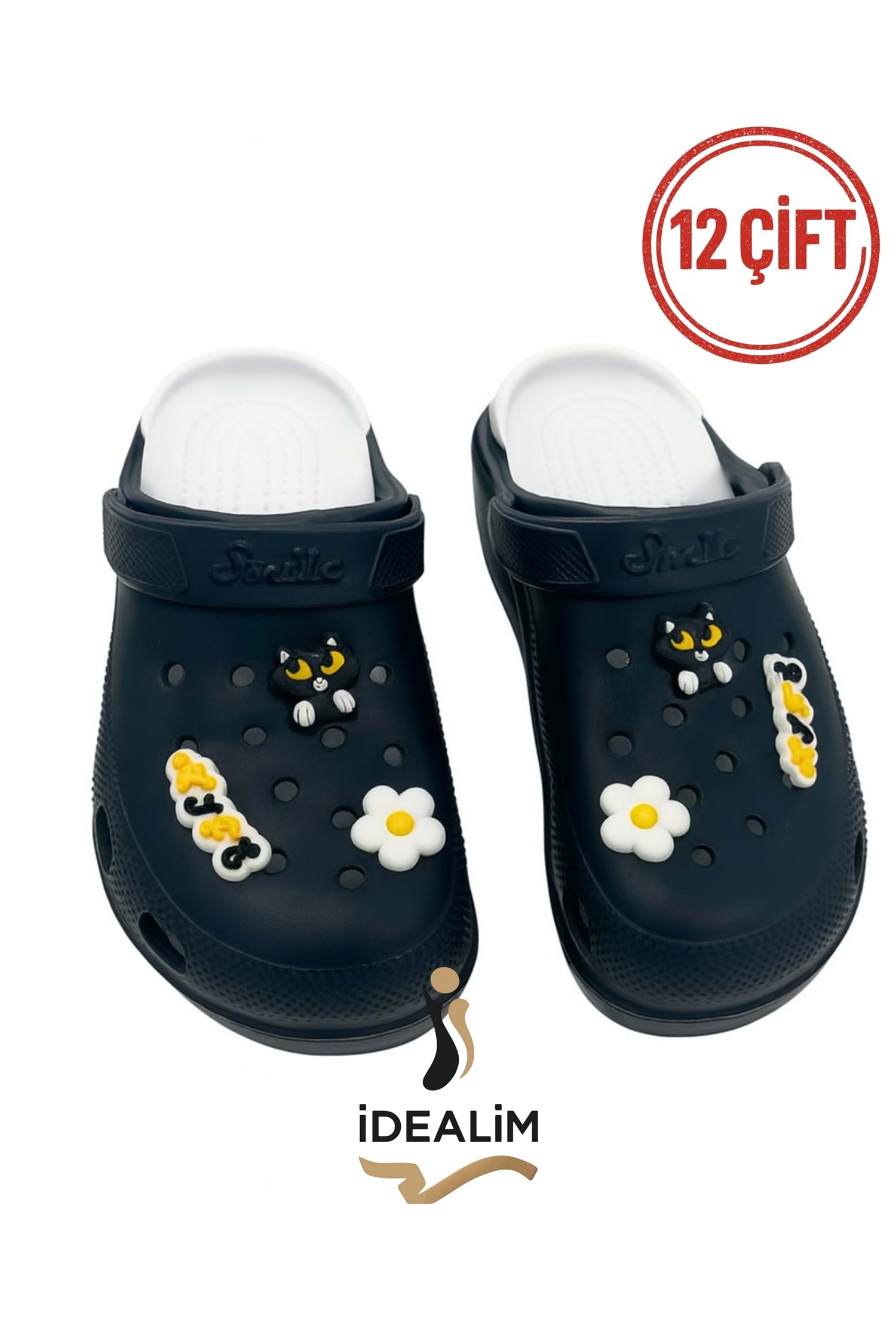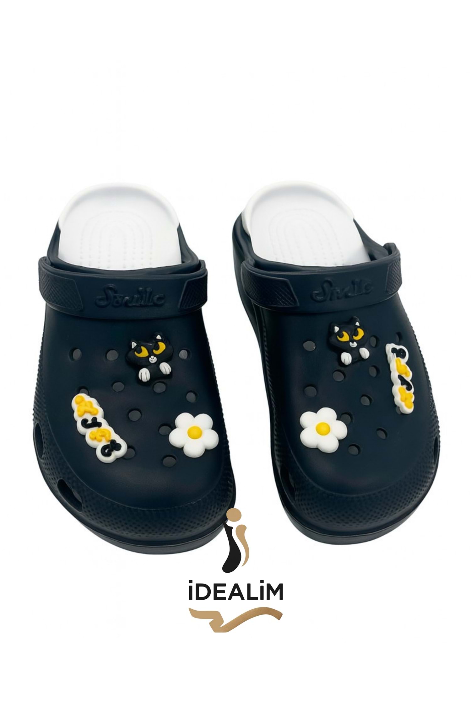 İDEALİM Rahat Tabanlı Yüksek Ölçekli Hastane Aşçı Hemşire Doktor Terliği - 222 FİĞÜRLÜ SÜSLÜ - SİYAH - 36