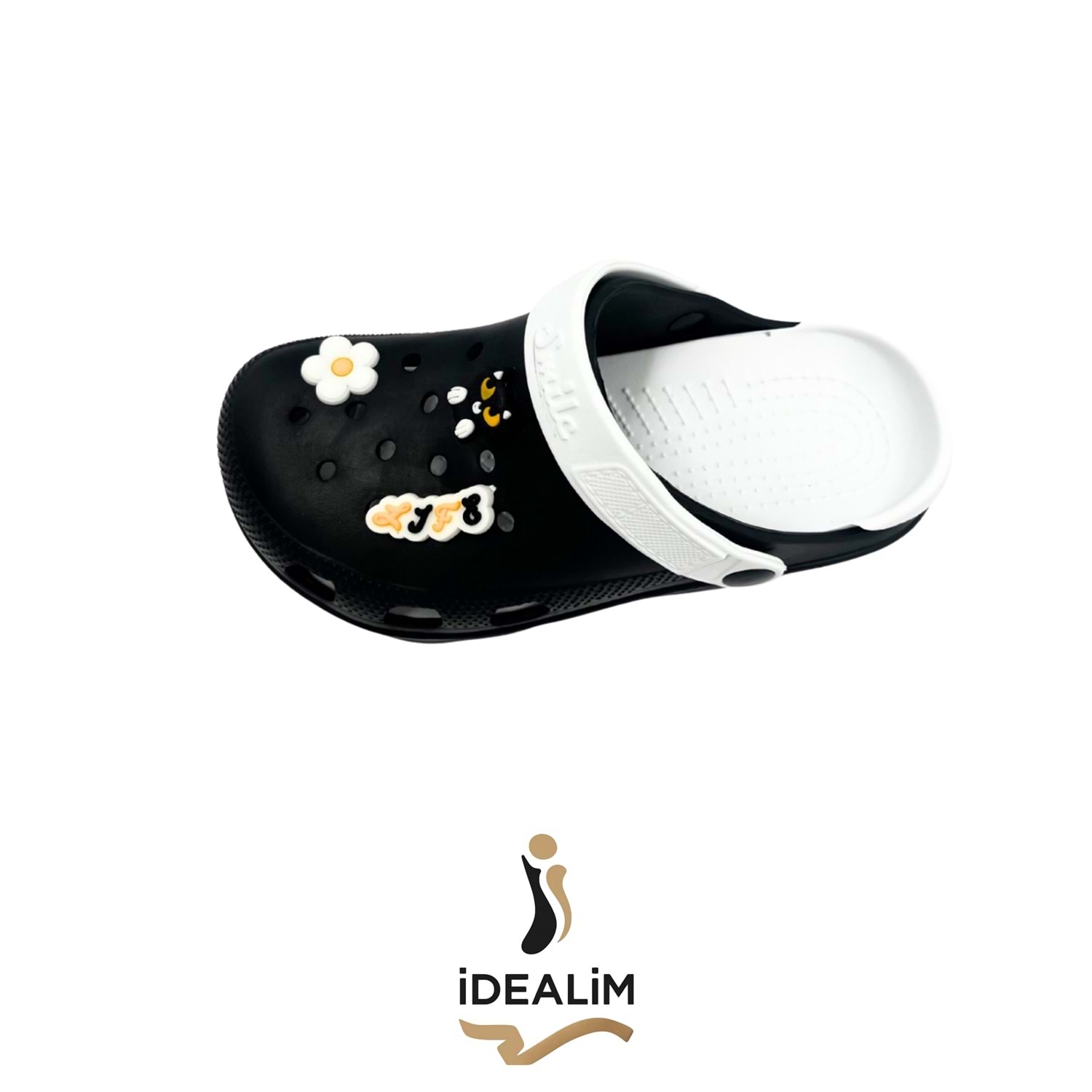 Kadın Siyah-Beyaz Smile Bantlı Dekoratif Delikli Terlik – Eğlenceli Yazlık Model Şık ve enerjik tasarımıyla öne çıkan kadın siyah-beyaz Smile terlik, yaz aylarının en konforlu ve eğlenceli modellerinden biridir. Hafif eva tabanı ile uzun süreli kullanımda bile rahatlık sağlar. Üst kısmındaki kedi figürü, çiçek süsleri ve yazı detayları modele neşeli bir hava katarken, arka bant üzerindeki “Smile” yazısı dinamik bir görünüm sunar. Renk: Siyah – Beyaz Cinsiyet: Kadın Malzeme: Hafif eva taban Detay: Kedi figürü, çiçek ve yazı süslemeli Bant: Beyaz "Smile" yazılı arka bant Özellik: Kaymaz taban, suya dayanıklı, kolay temizlenir Kullanım Alanı: Günlük, ev, bahçe, plaj