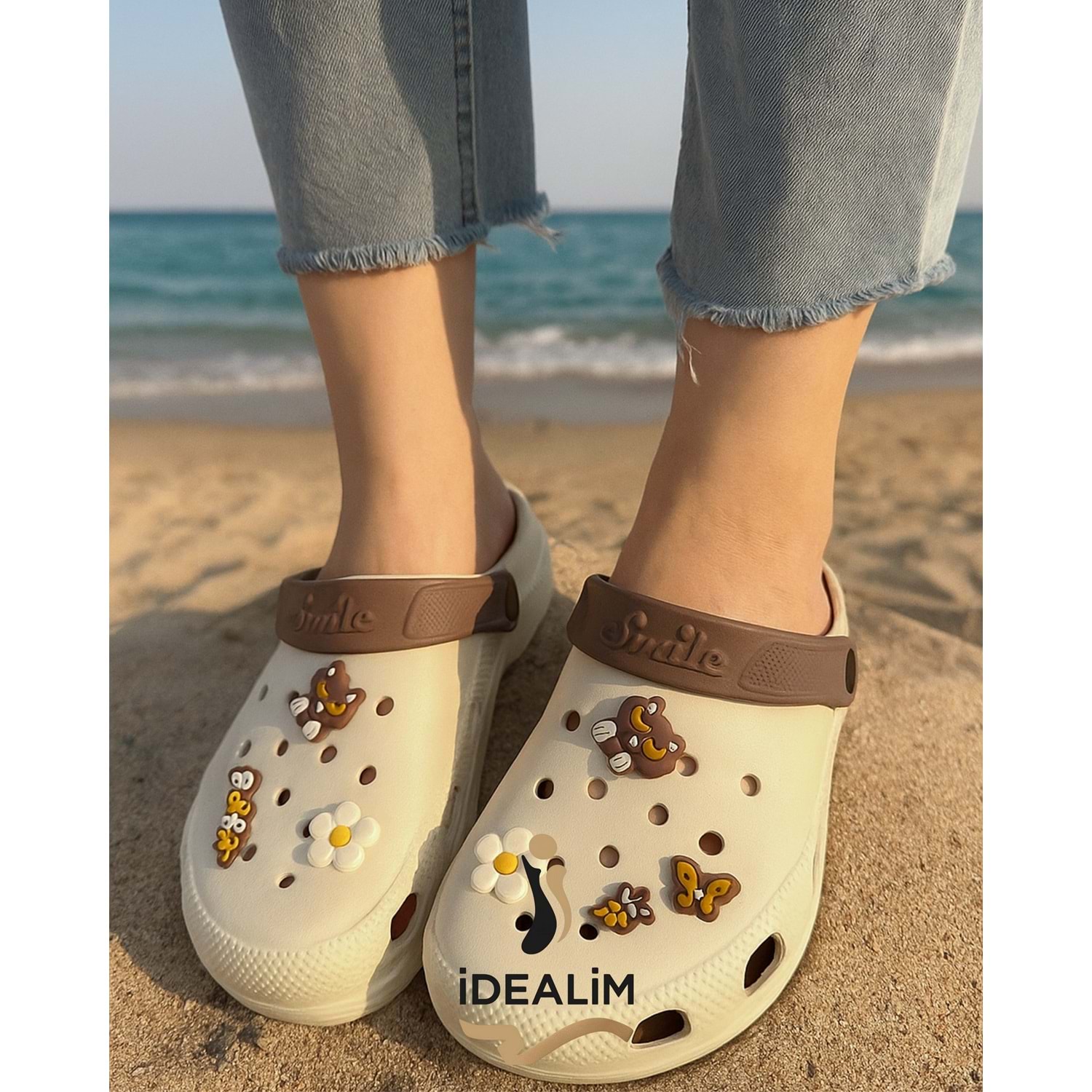 İDEALİM Rahat Tabanlı Yüksek Ölçekli Hastane Aşçı Hemşire Doktor Terliği - 222 FİĞÜRLÜ SÜSLÜ - VANİLYA (KAHVE) - 39