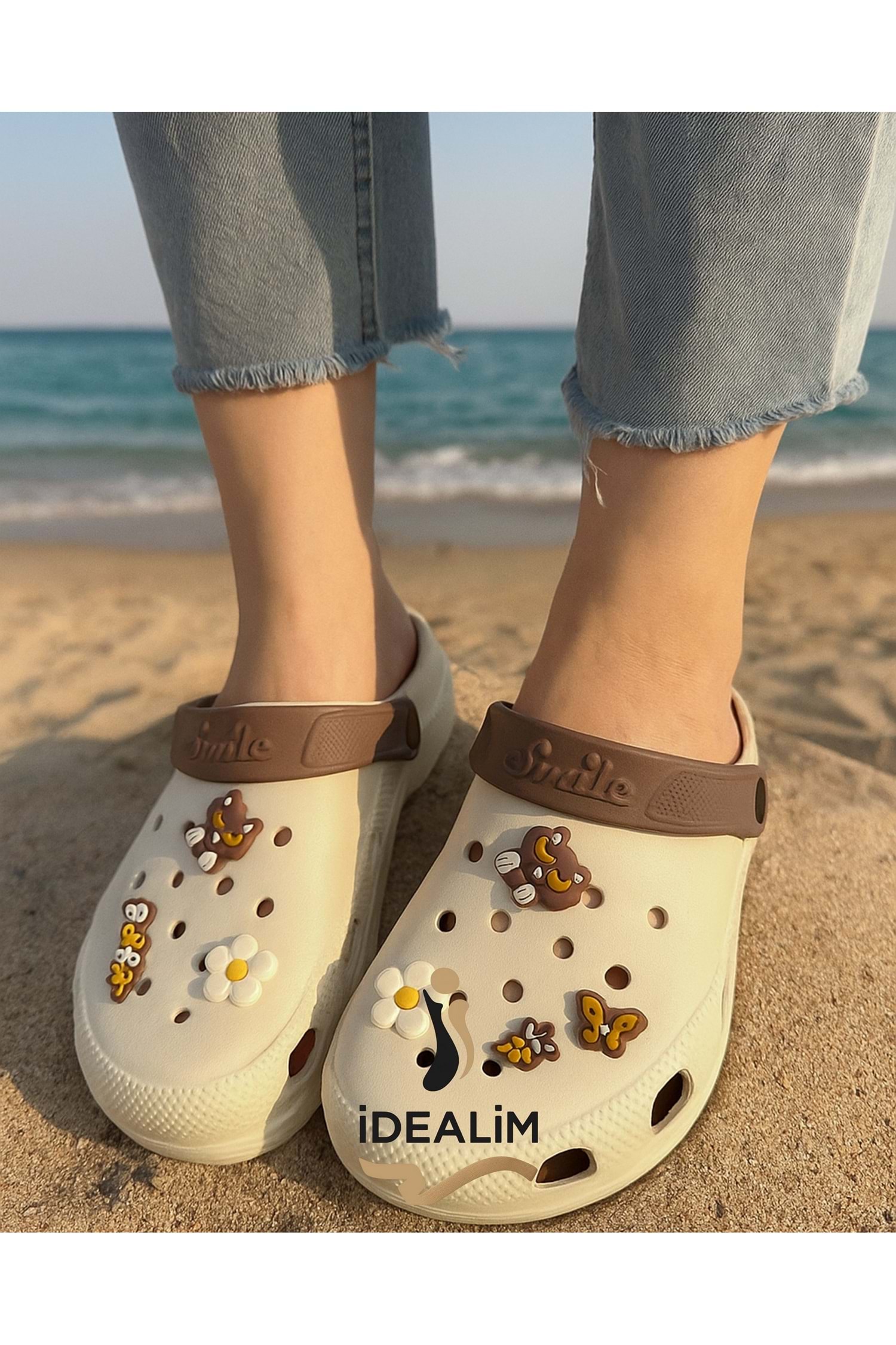 İDEALİM Rahat Tabanlı Yüksek Ölçekli Hastane Aşçı Hemşire Doktor Terliği - 222 FİĞÜRLÜ SÜSLÜ - VANİLYA (KAHVE) - 40