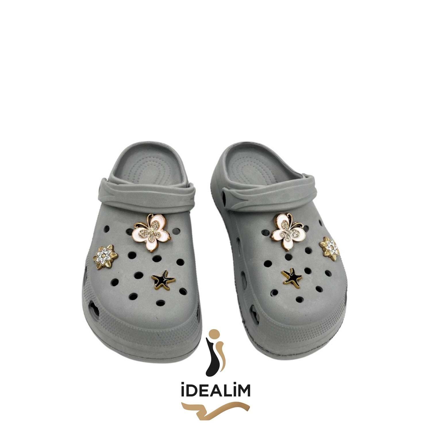 Hem şık hem de konforlu yapısıyla öne çıkan kadın siyah dekoratif terlik, günlük yaşamda ve yaz aylarında rahatlıkla kullanılabilir. Hafif yapısı sayesinde uzun süreli konfor sağlar. Üst kısmında yer alan kelebek, çiçek ve yıldız süs detayları modern ve zarif bir görünüm kazandırır. Kaymaz tabanı sayesinde güvenli adımlar atmanıza yardımcı olur. Renk: Koyu Gri Cinsiyet: Kadın Malzeme: Hafif eva taban Detay: Kelebek, çiçek ve yıldız süslemeli Özellik: Kaymaz taban, suya dayanıklı, kolay temizlenir Kullanım Alanı: Ev, bahçe, plaj ve günlük kullanım