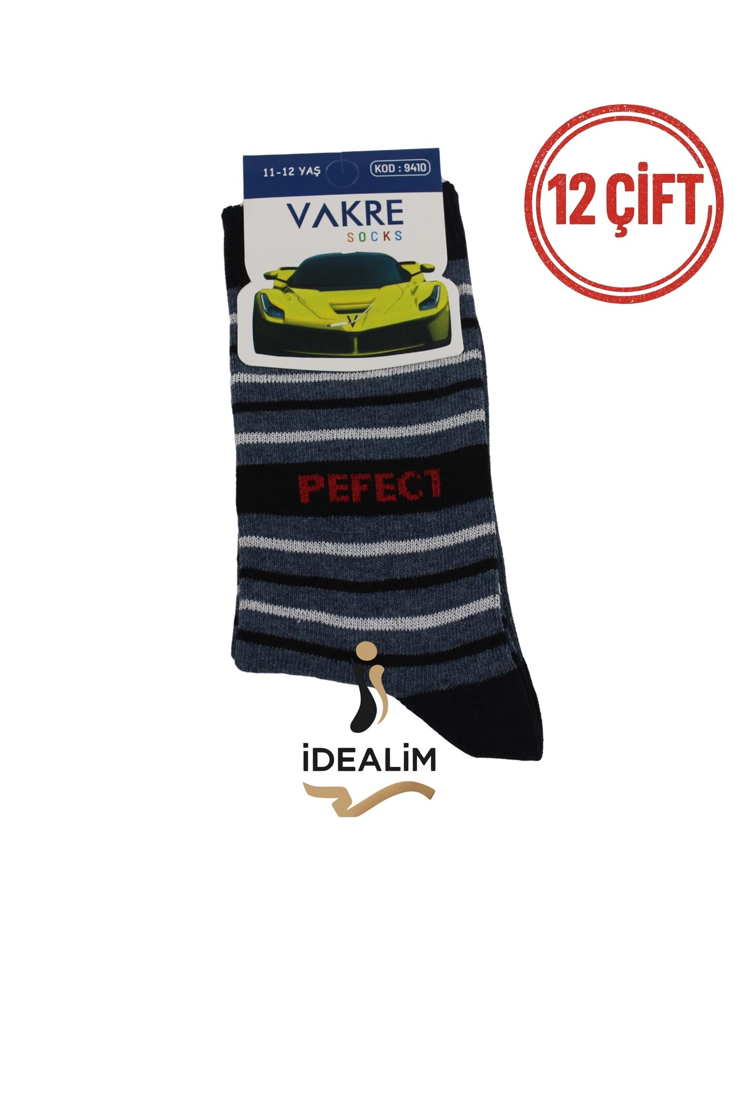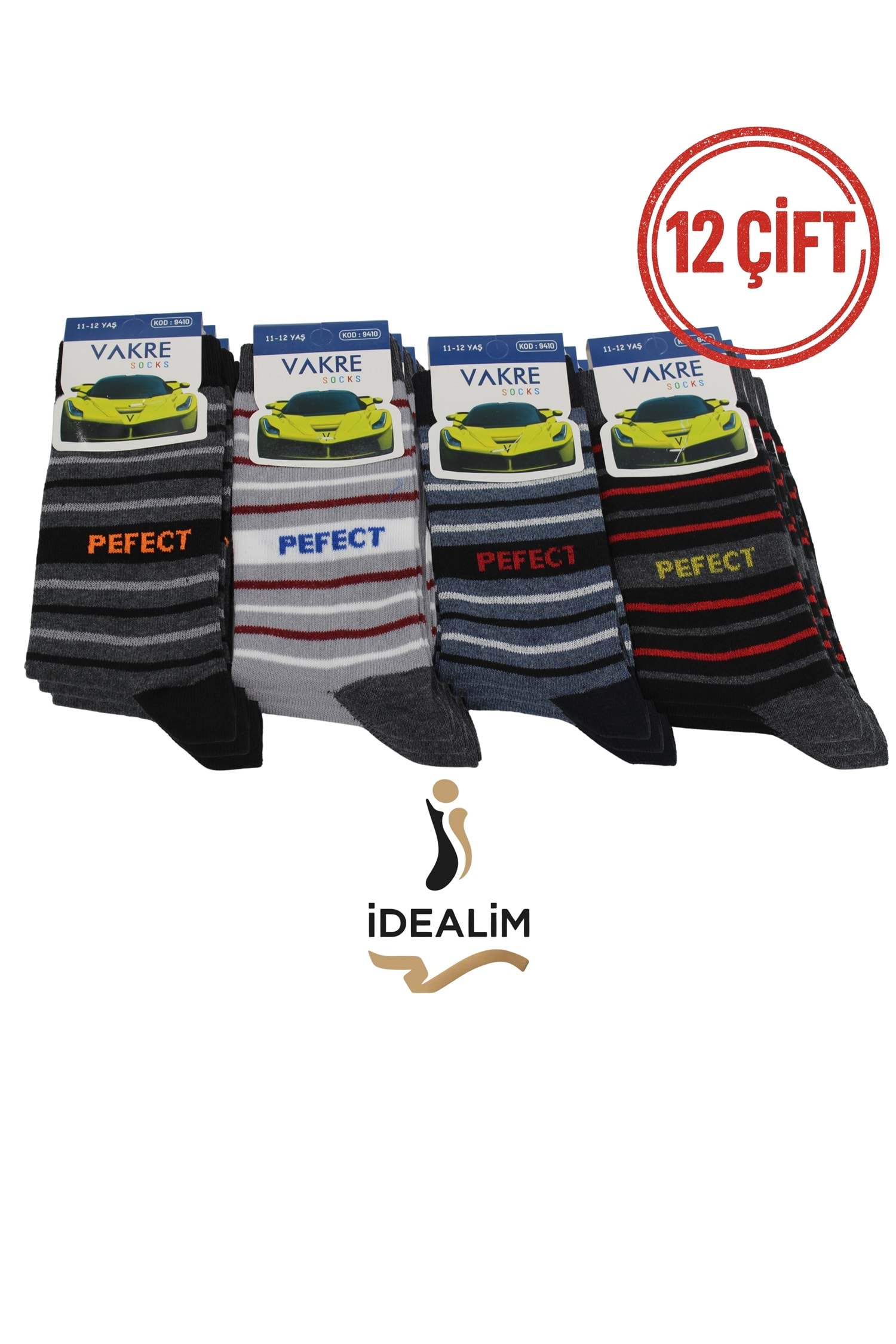 VAKRE 12Lİ ÇOCUK SOKET ÇORAP - ERK ÇOCUK-PEFECR-ÇİZGİLİ - ASORTİ - 11-12