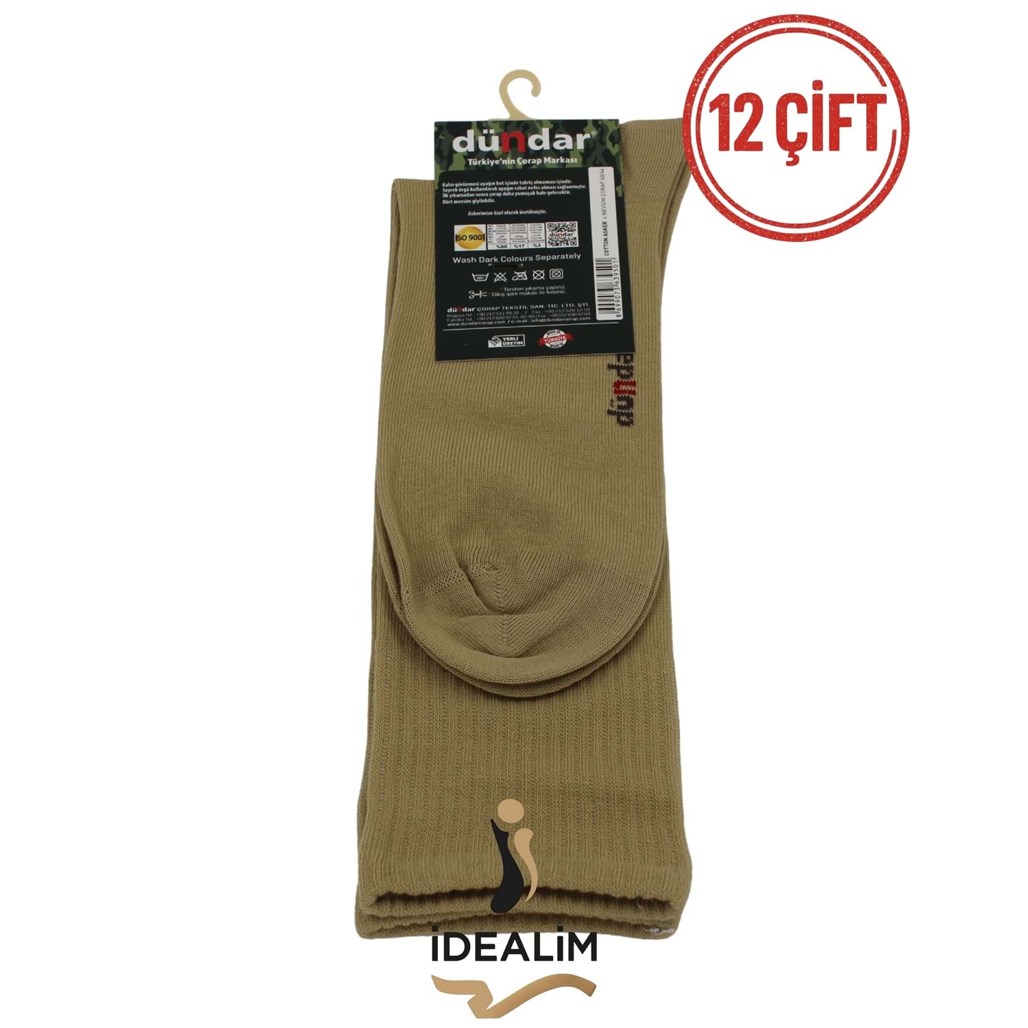 Zorlu koşullar ve yoğun kullanım için özel olarak üretilen Dündar Plus 12’li 4 Mevsim Asker Çorap, pamuk karışımlı güçlü dokusu ile ayak sağlığınızı korur. Askeri görevler, outdoor aktiviteler, iş hayatı ve günlük kullanım için uygundur. 4 mevsim kullanılabilen yapısıyla yazın serin, kışın sıcak tutar. Askeri kullanıma uygun: Dayanıklı ve uzun ömürlü kumaş. Pamuk karışımlı iplik: Nefes alabilen, teri emen ve rahat doku. Orta konç uzunluğu: Bot ve postal kullanımına uygun. 12’li ekonomik paket: Yoğun kullanım için avantajlı. Esnek ve sağlam lastik: Ayağı sıkmaz, iz bırakmaz. Kolay yıkanır: Yıkamada formunu korur. Renk:HAKİ Numara: 40–45 (standart erkek asker/postal bedenleri).