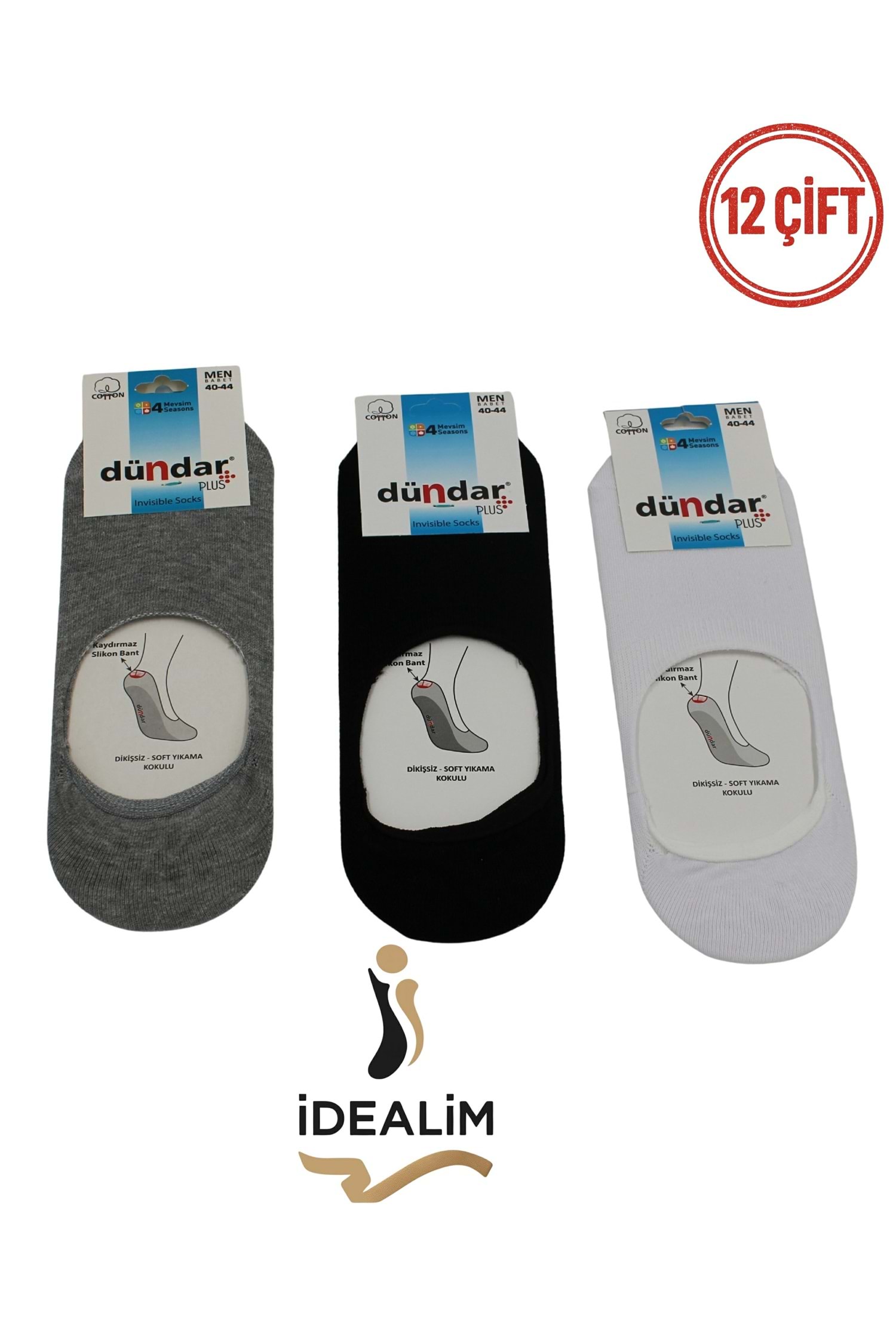 DÜNDAR PLUS 12Lİ ERKEK COTTON BABET ÇORAP - 8207-ASORTİ-40-44