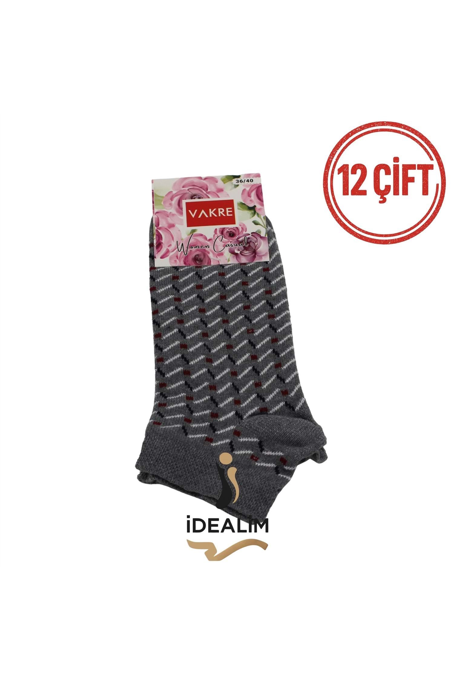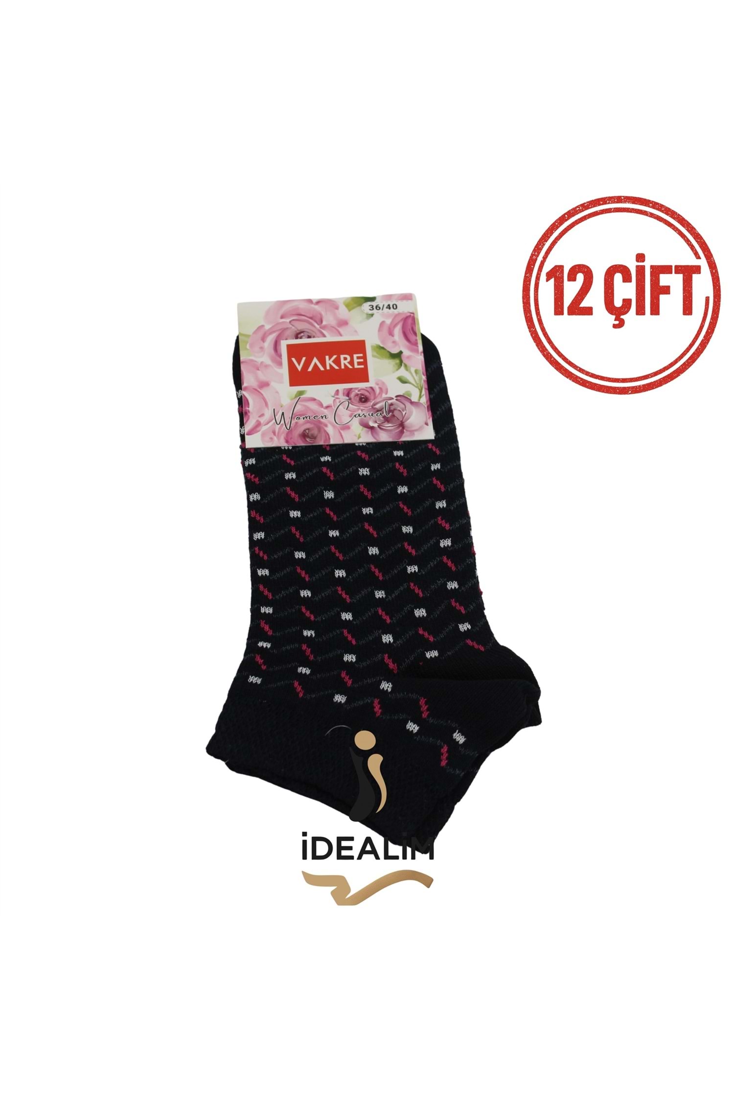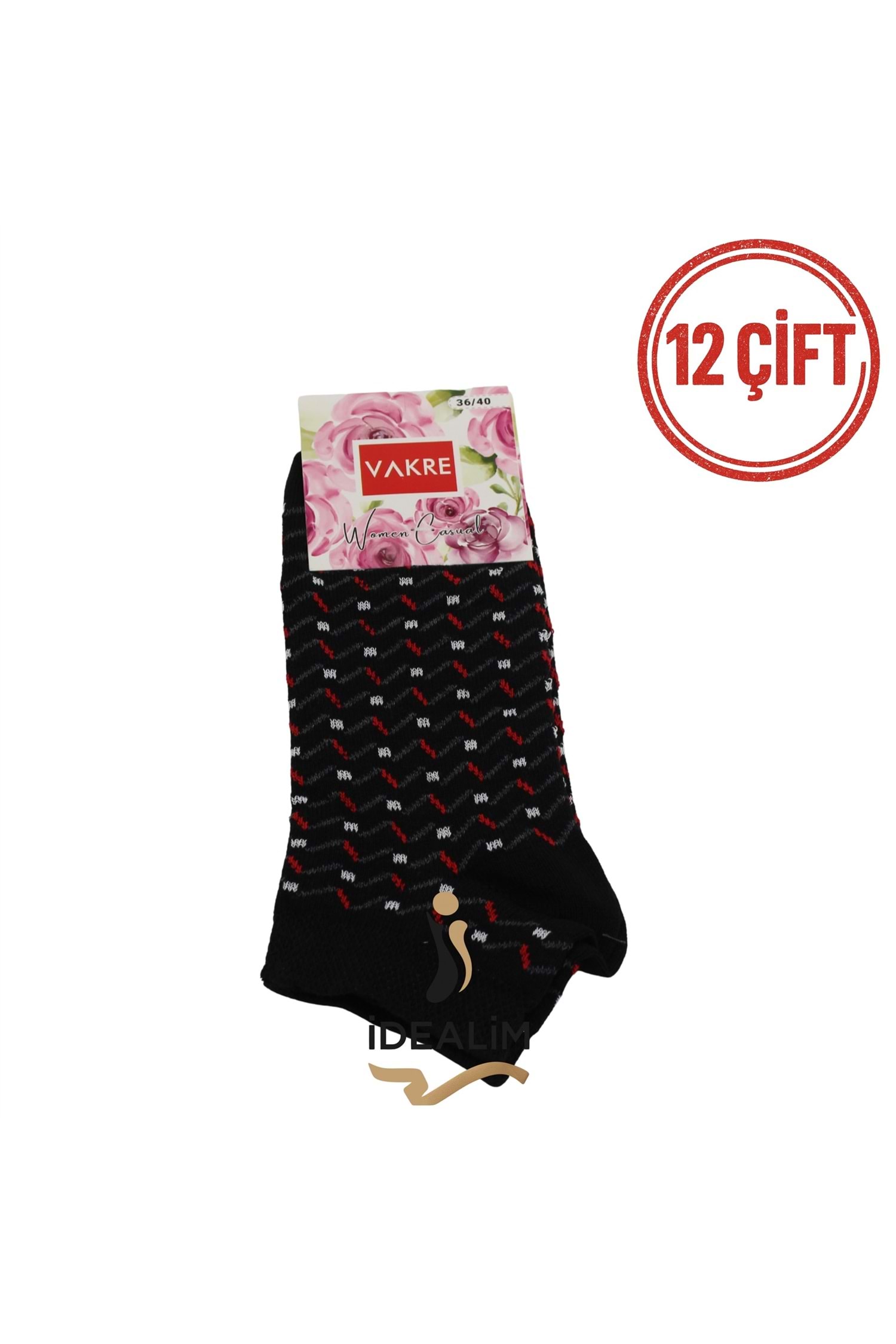 VAKRE 12Lİ ERKEK PATİK ÇORAP - E-P-NOKTA DESEN PTK - ASORTİ - 40-44