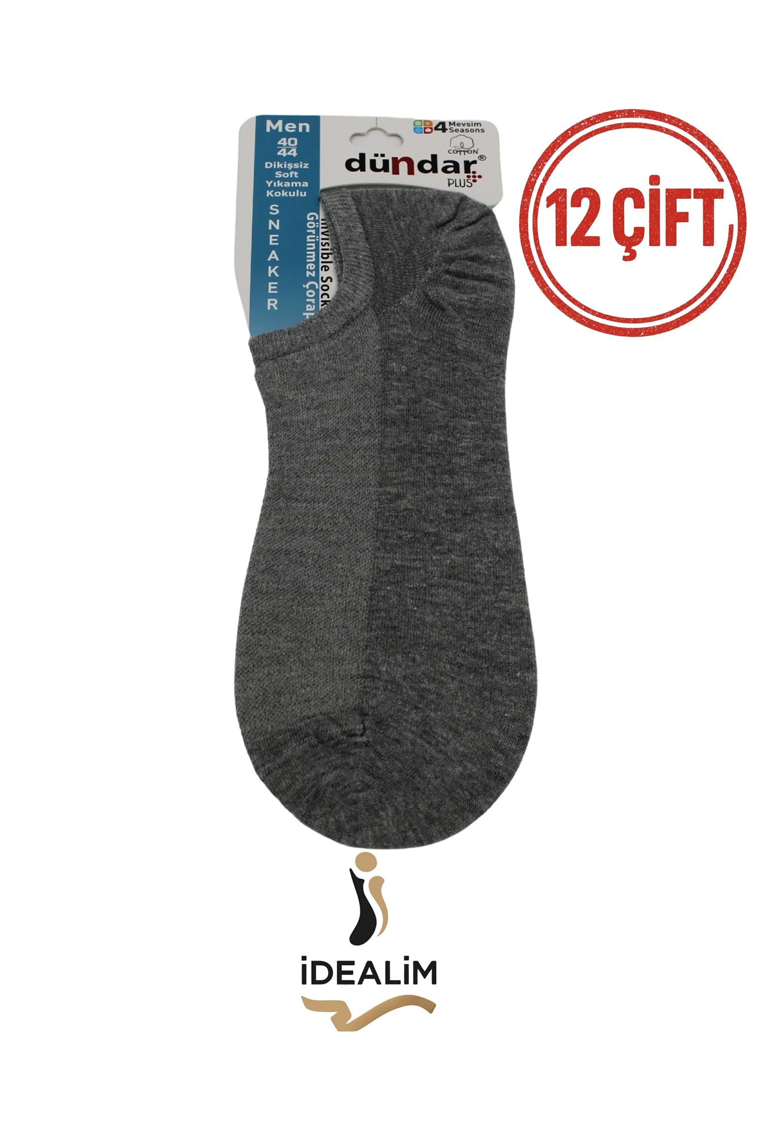 DÜNDAR PLUS 12Lİ ERKEK COTTON SNEAKER - COTTON - 5558-GRİ-40-44