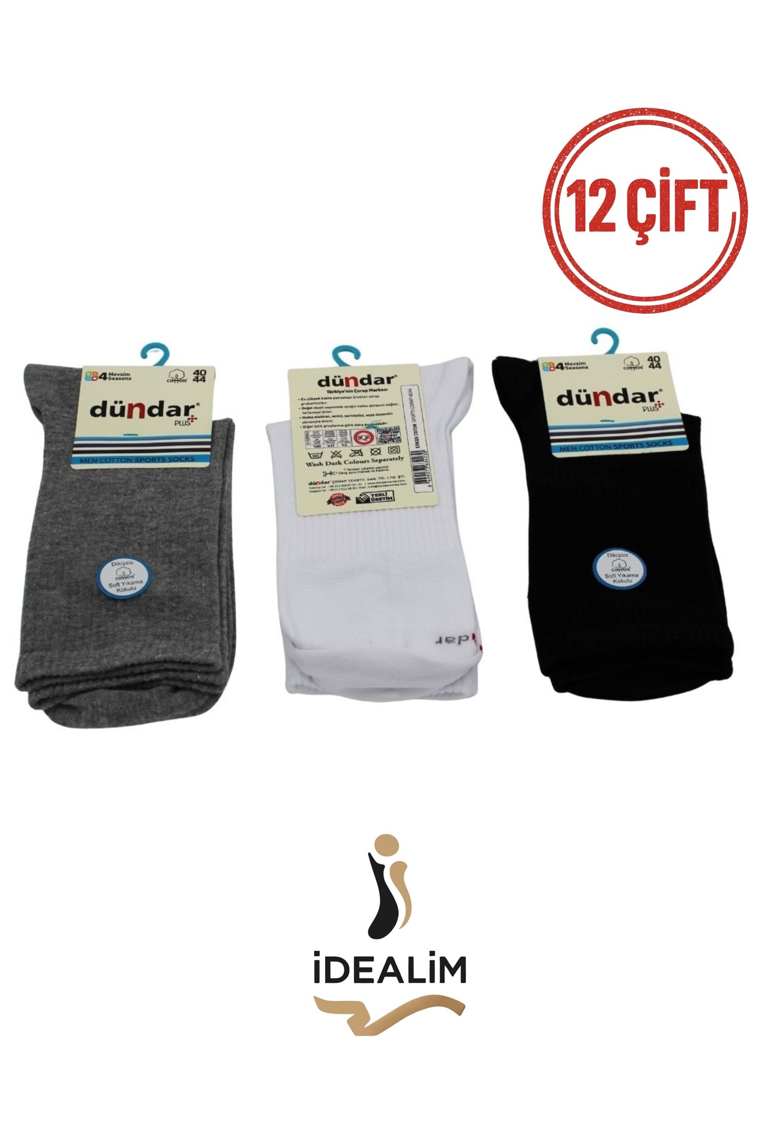 DÜNDAR 12Lİ ERKEK COTTON SPORTS ÇORAP - COTTON - ASORTİ - 40-44