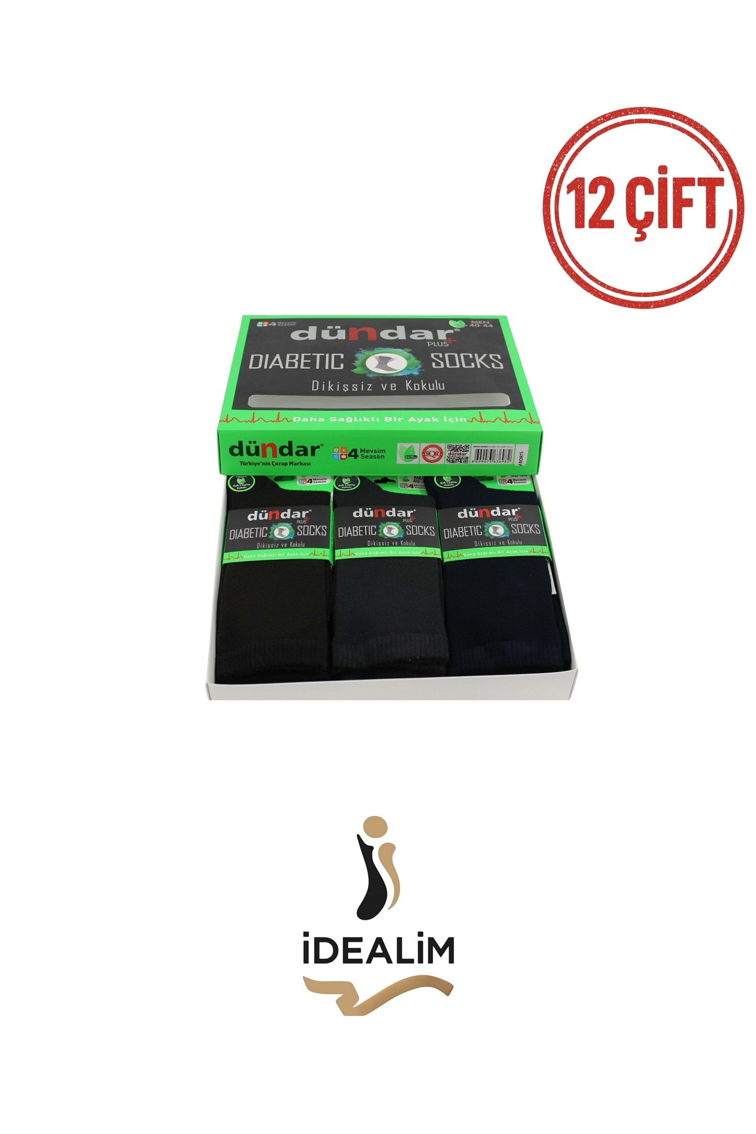 DÜNDAR PLUS 12Lİ ERKEK BAMBU (DİYABETİK) ÇORAP - DÜNDAR - BAMBU - ASORTİ - 40-44