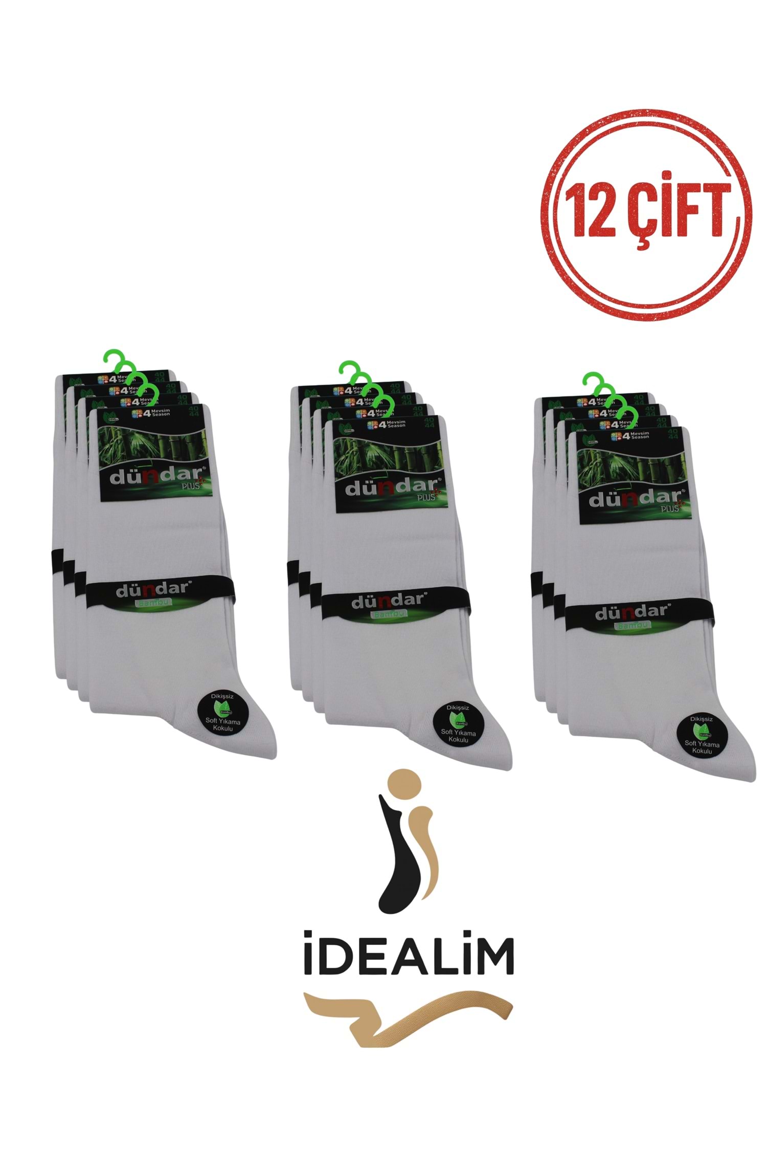 DÜNDAR PLUS 12Lİ ERKEK BAMBU LYCRA SOKET ÇORAP - BAMBU - BEYAZ - 40-44
