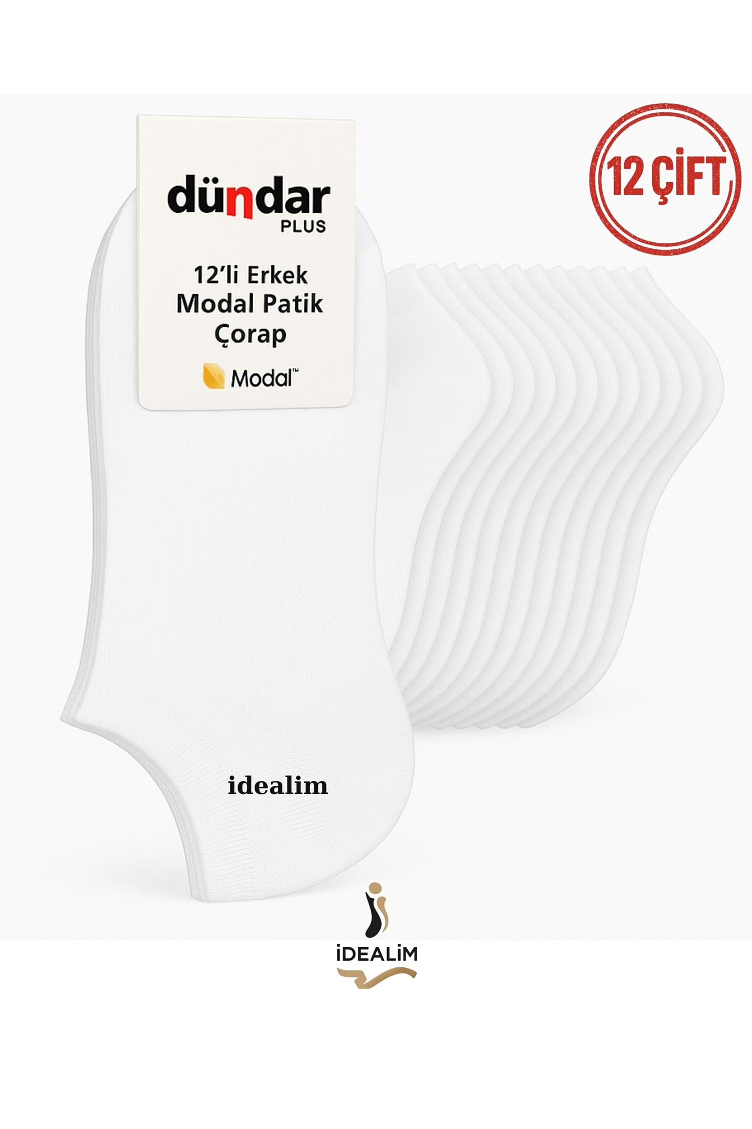 DÜNDAR PLUS 12Lİ ERKEK MODAL PATİK ÇORAP- MODAL - BEYAZ - 40-44