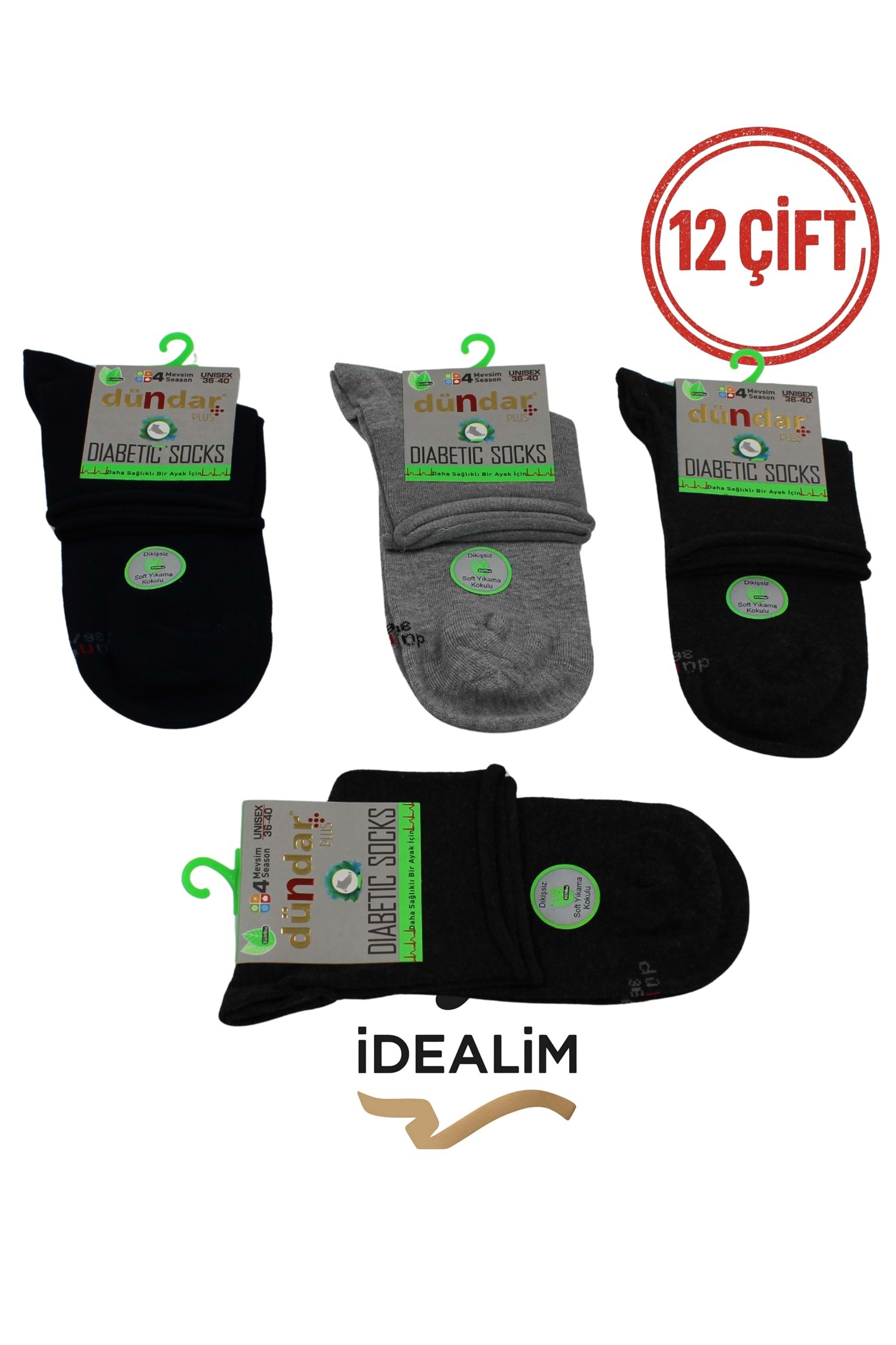 DÜNDAR 12Lİ UNISEX BAMBU KONÇ DİYABETİK - DÜNDAR - BAMBU-DİYABET - K.ASORTİ - 36-40