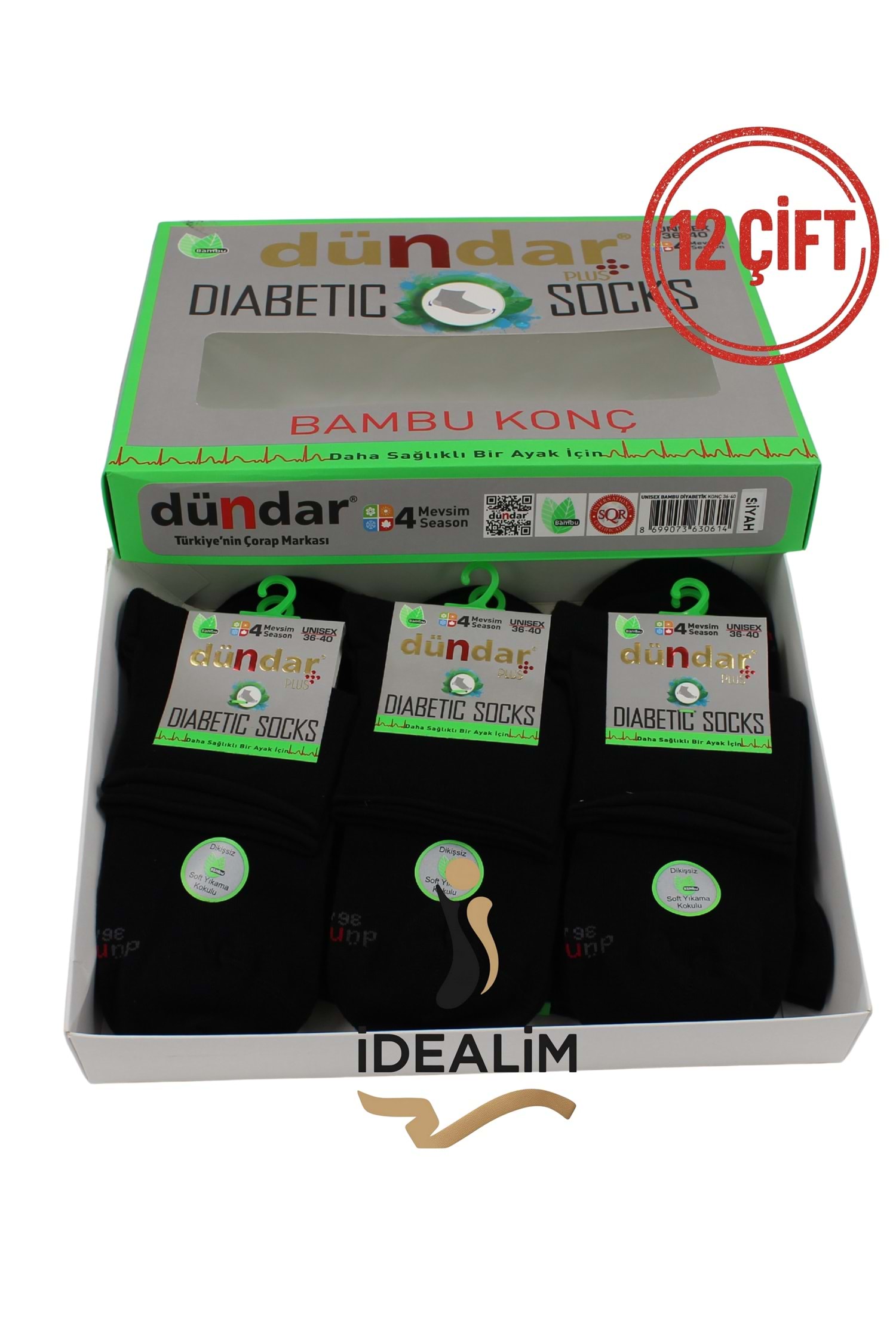 DÜNDAR 12Lİ UNISEX BAMBU KONÇ DİYABETİK - DÜNDAR - BAMBU-DİYABET - SİYAH - 36-40