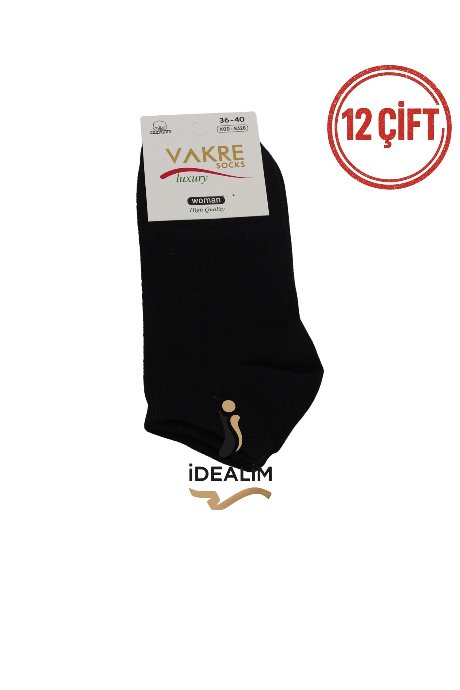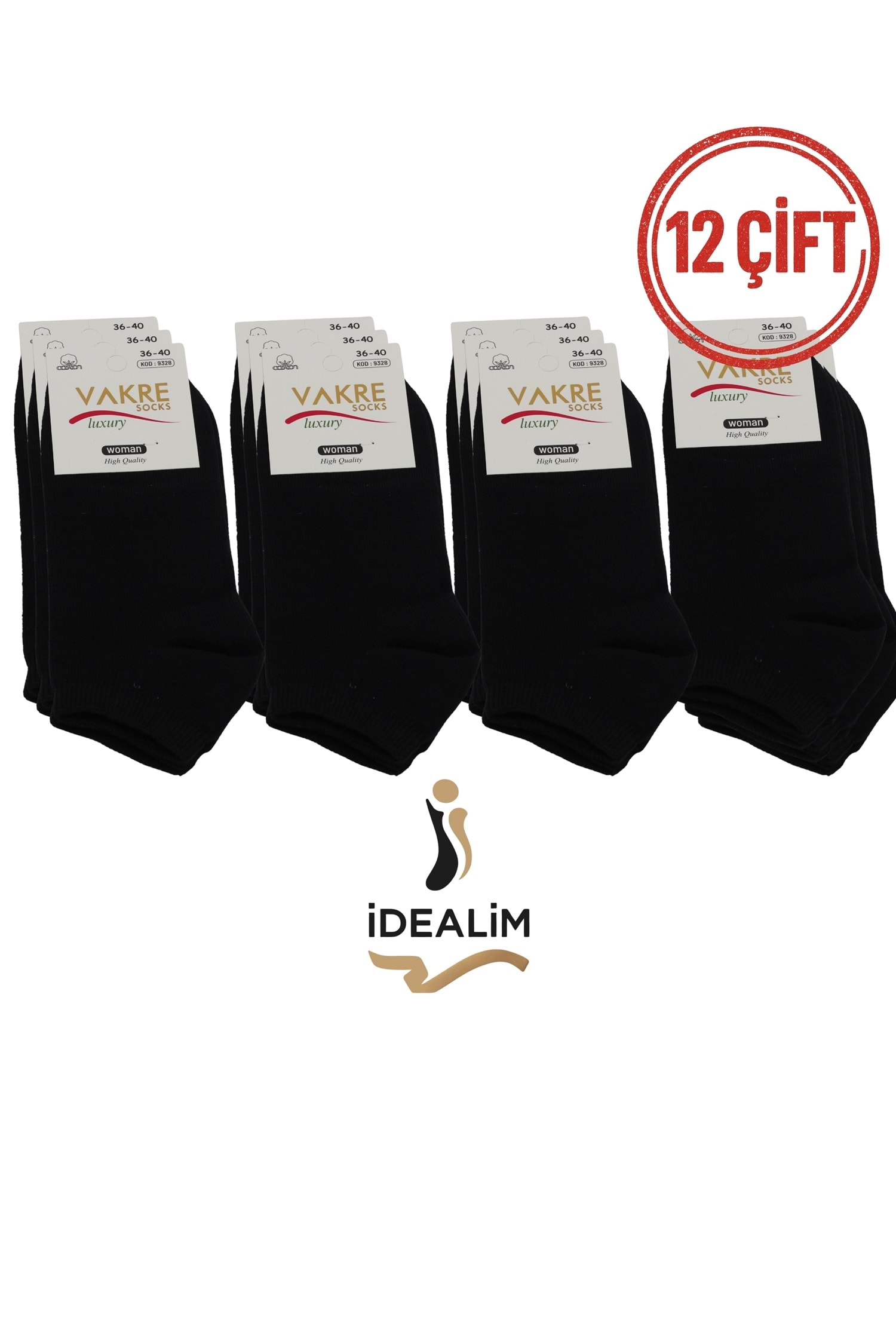 VAKRE 12Lİ BAYAN PATİK ÇORAP - B-DÜZ PATİK - SİYAH - 36-40