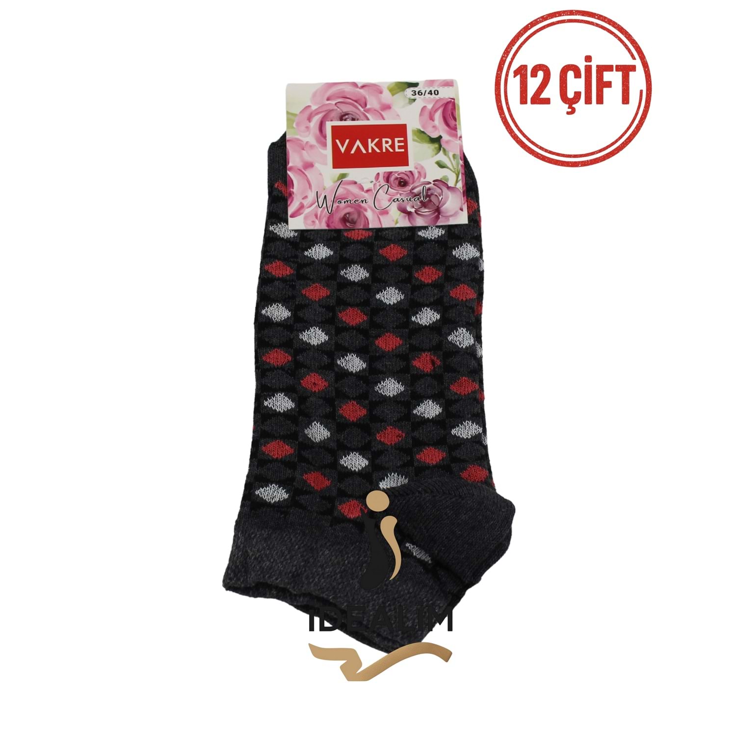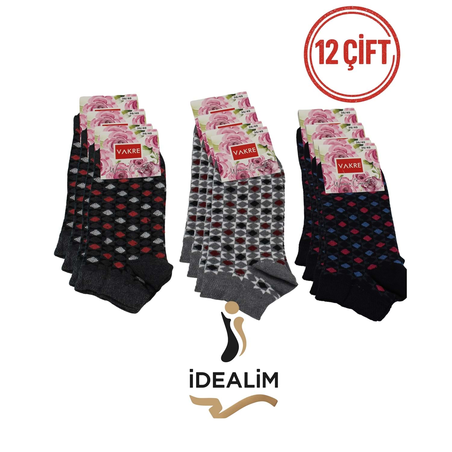 Vakre 12’li Bayan Patik Çorap Seti – Renkli & Rahat Günlük Çoraplar Şıklığı ve rahatlığı bir arada sunan Vakre 12’li Bayan Patik Çorap Seti, günlük kullanımlarınız için mükemmel bir seçim! Rahat Kalıp: Gün boyu ayağınızı sıkmaz, lastikleri iz yapmaz. Kaliteli Kumaş: Pamuk ağırlıklı yapısıyla nefes alır, terleme yapmaz. Şık & Sportif: Spor ayakkabı, günlük giyim ve ev kullanımı için idealdir. Dayanıklı: Uzun süreli kullanıma uygun esnek ve sağlam dokuma. Günlük yaşam İş & okul Spor aktiviteleri Modeller stoktaki modellere göre farklılık gösterebilir