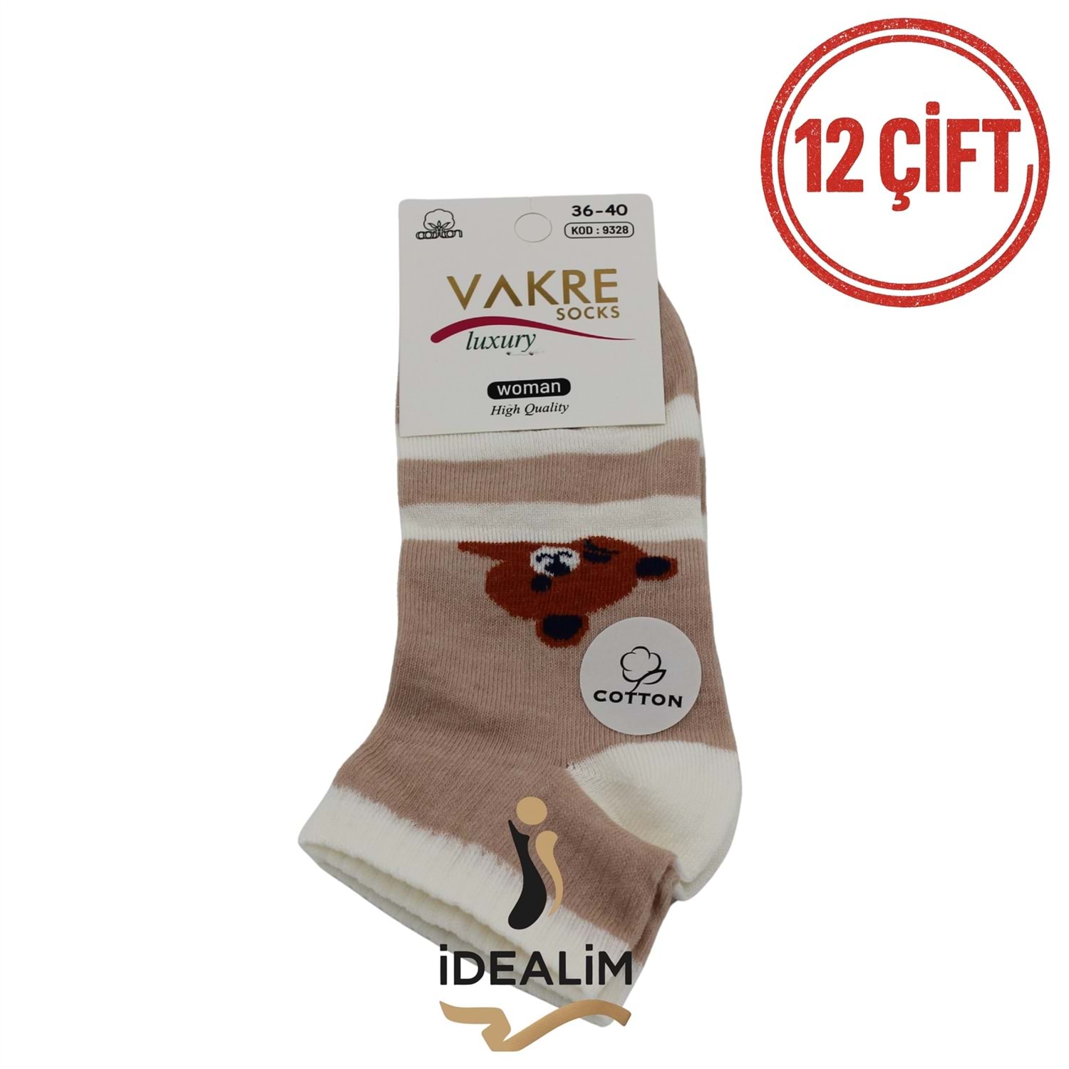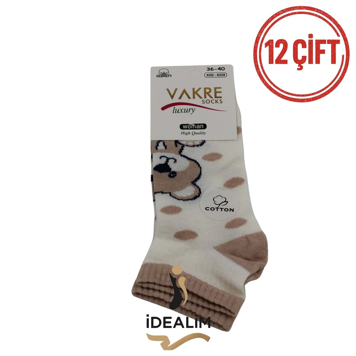 Vakre 12’li Bayan Penye Patik Çorap – B-P Ayıcık Desenli – Asorti Renk – 36-40 Numara Sevimli ayıcık desenleriyle dikkat çeken Vakre 12’li Bayan Penye Patik Çorap Seti, hem şık hem de konforlu yapısıyla günlük kombinlerinize renk katıyor. Paket İçeriği: 12 çift bayan penye patik çorap Desen: Ayıcık desenli (asorti renklerde karışık gönderim) Numara: 36-40 (standart uyum) Kumaş Yapısı: Penye pamuk – yumuşak, nefes alabilen, terletmeyen dokuma Konfor: Ayağı sıkmayan, iz bırakmayan esnek lastik yapısı Kullanım Alanı: Günlük yaşam, spor ayakkabı, ev içi kullanım için ideal Neden Tercih Etmelisiniz? Tatlı ayıcık desenleri ile modern & eğlenceli görünüm Pamuklu penye yapısı sayesinde gün boyu rahatlık Dayanıklı
