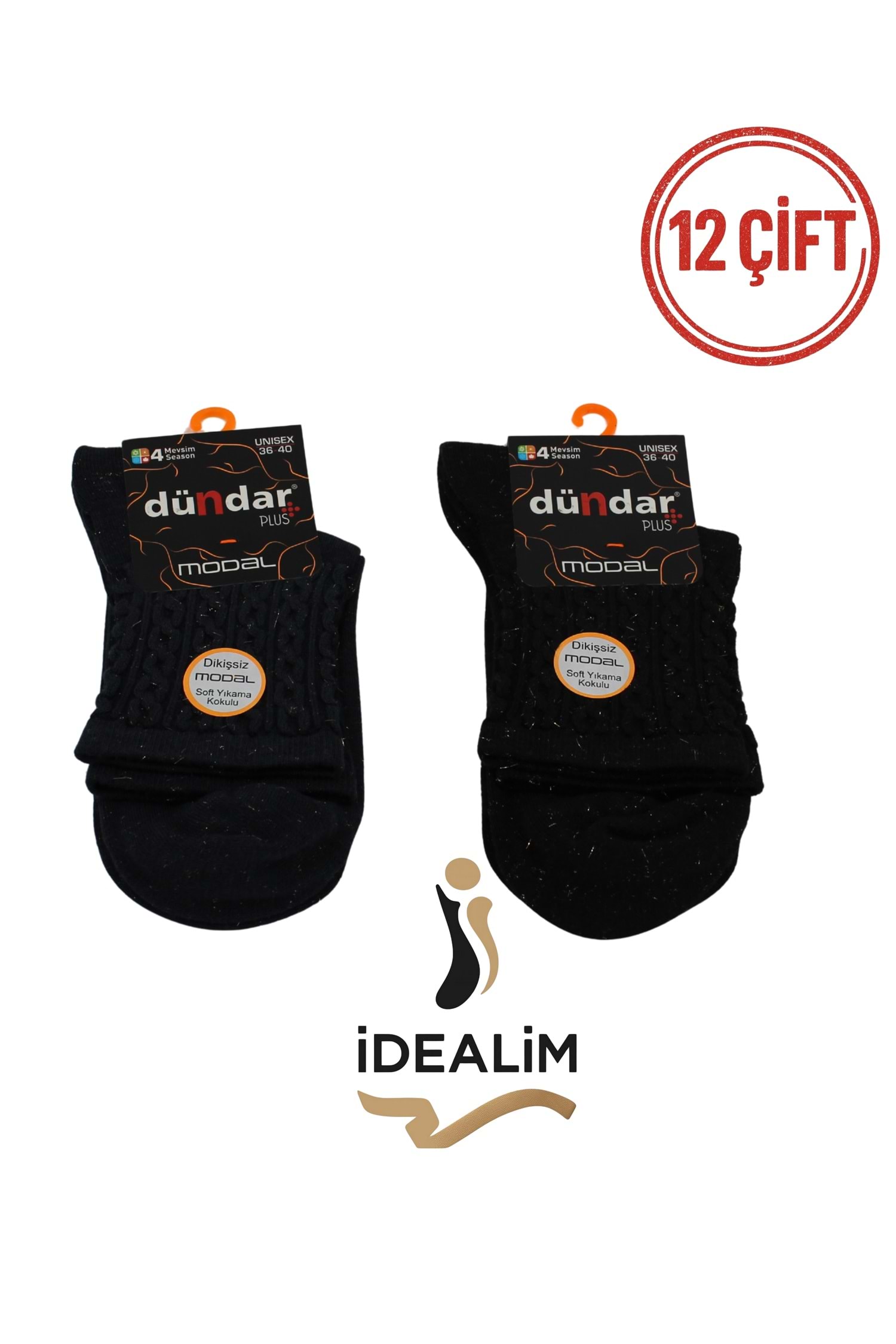 DÜNDAR PLUS 12Lİ KADIN MODAL SOKET ÇORAP - DÜNDAR - MODAL-5725-35-SİMLİ - ASORTİ - 36-40